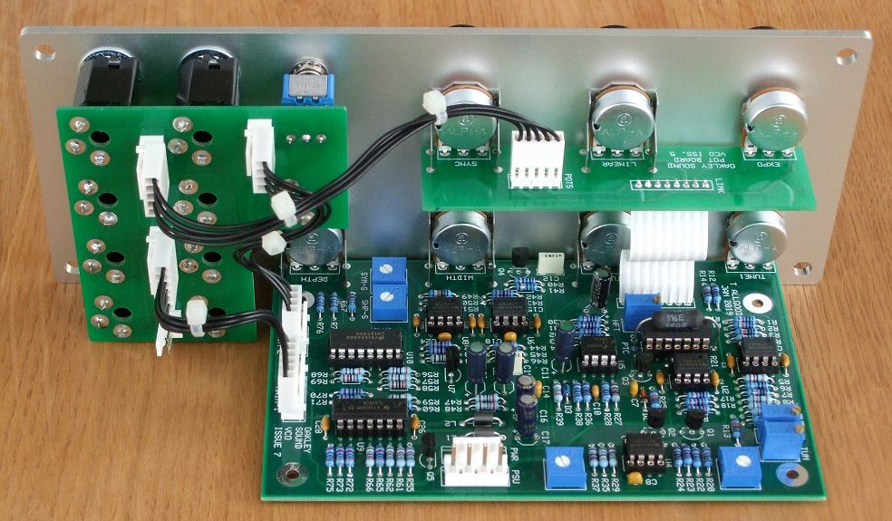 special pot board PCB and 0.1″ flexible connections. The VCO
